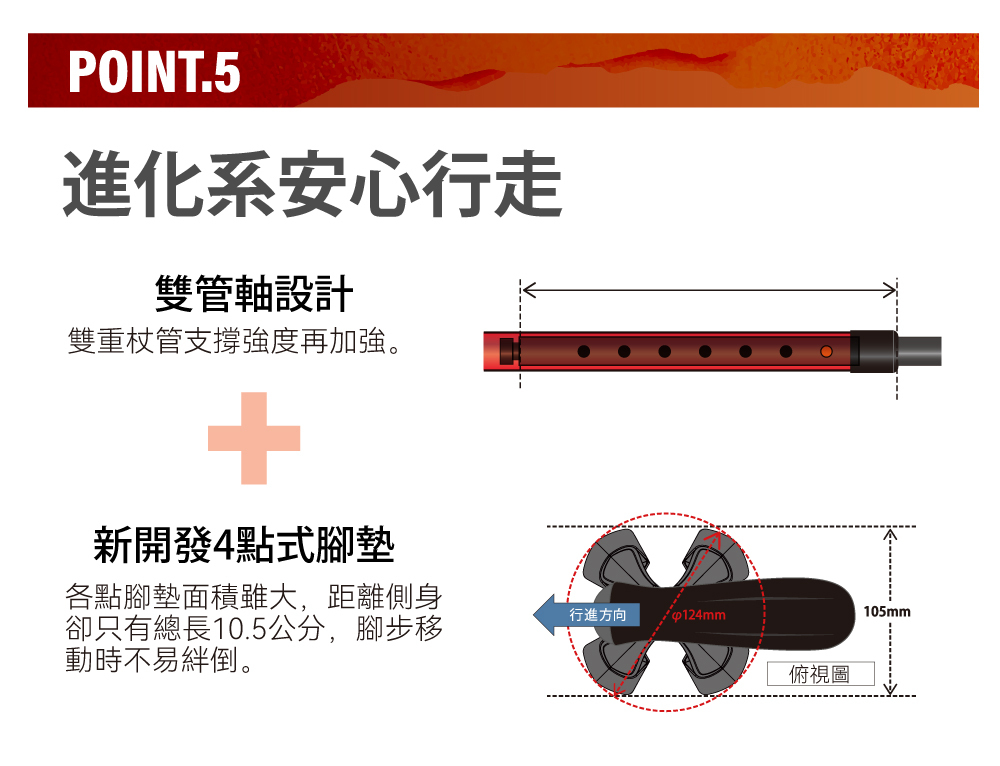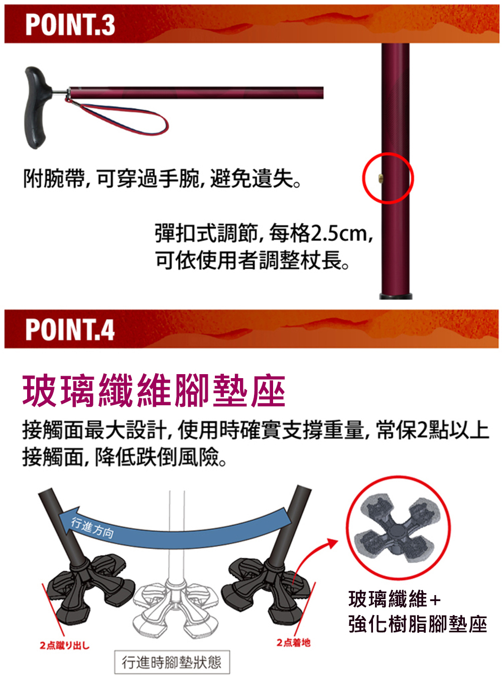 ★ 新開發的四點式腳墊 穩定性強 易於步行