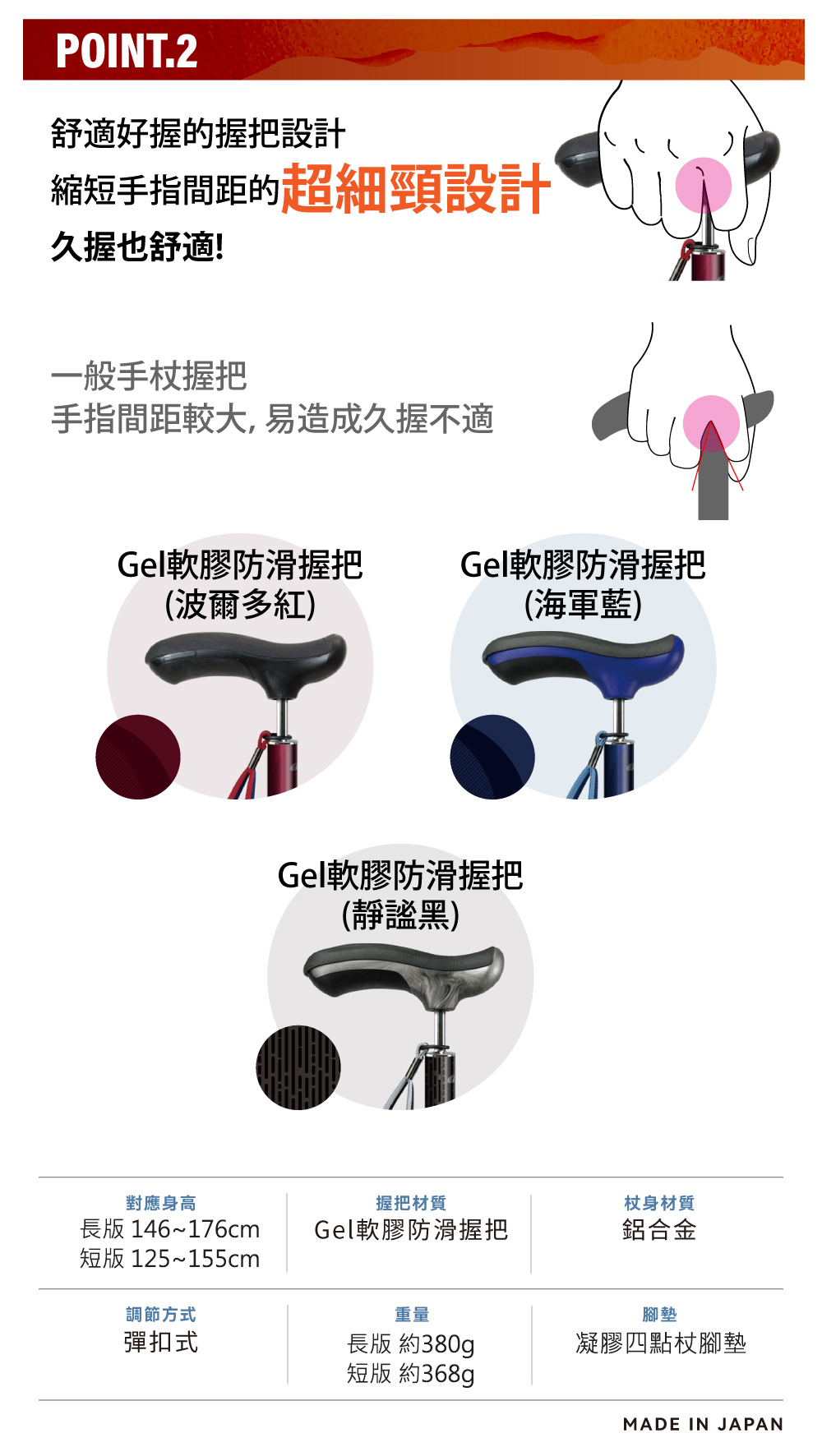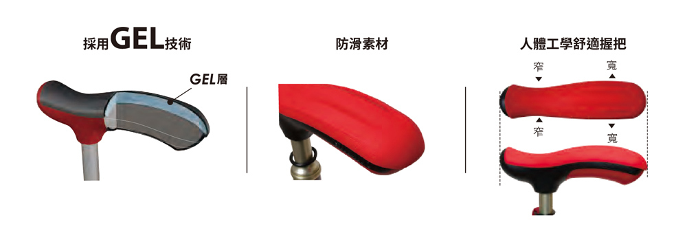 ★ 凝膠握把 吸收行走時地面的衝擊 久握不痛
