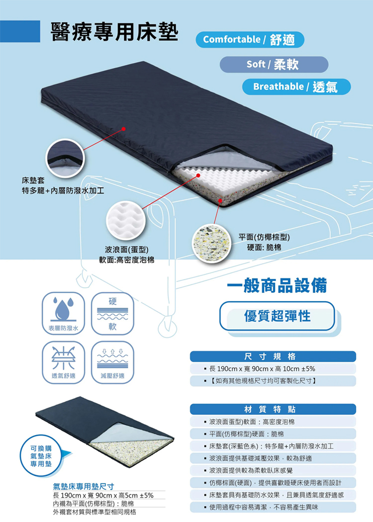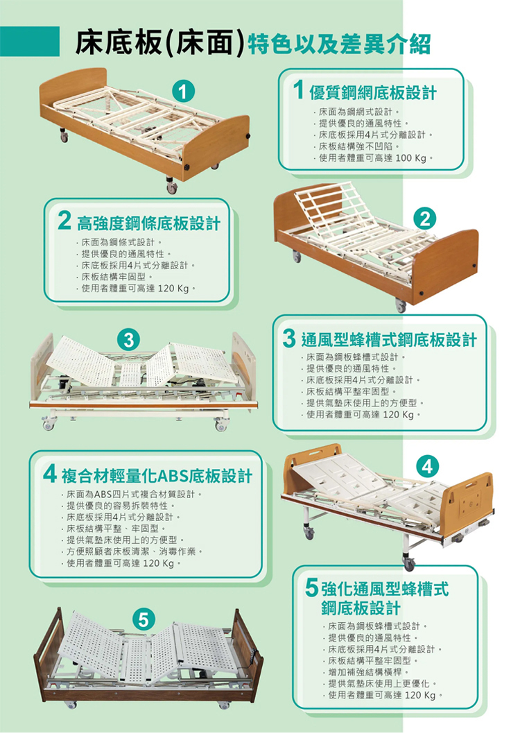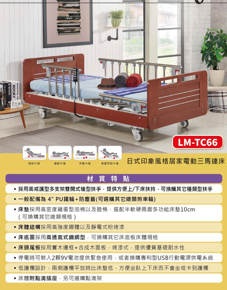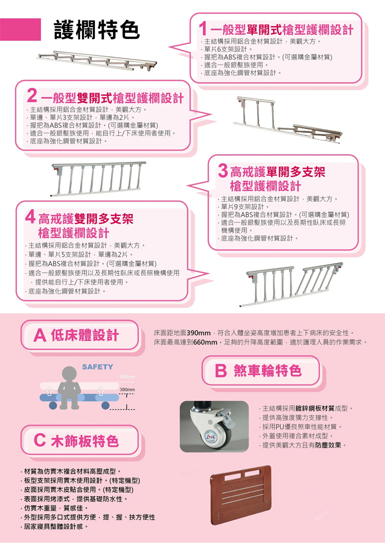 ★ 採用高戒護型多支架開式搶型扶手,提供方便上下床扶持
