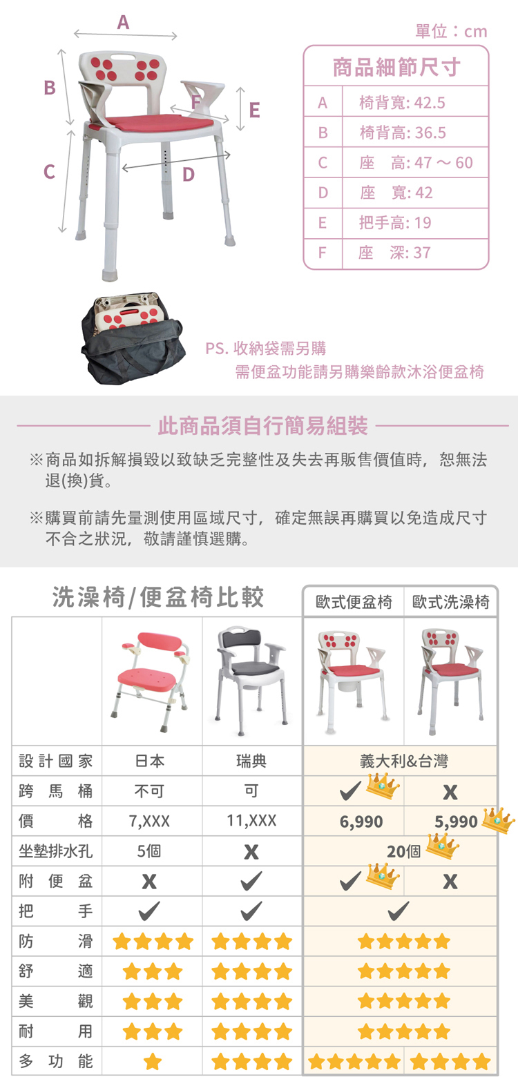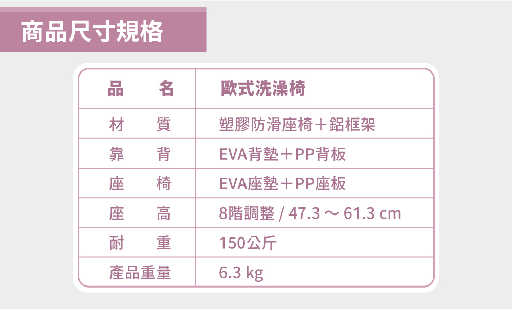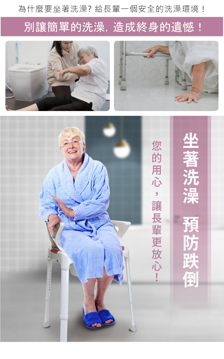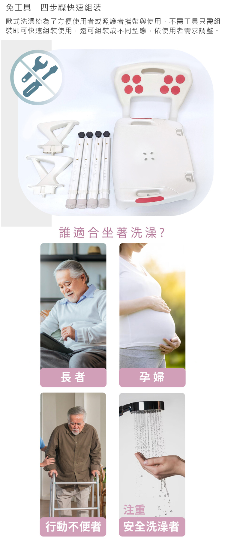◆防浴室意外:坐墊表面防滑紋路&腳墊防滑設計,更安全不滑倒。
