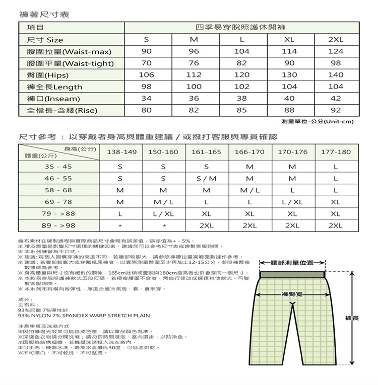 ★褲身橫向彈性,褲腰鬆緊帶,四季皆可穿