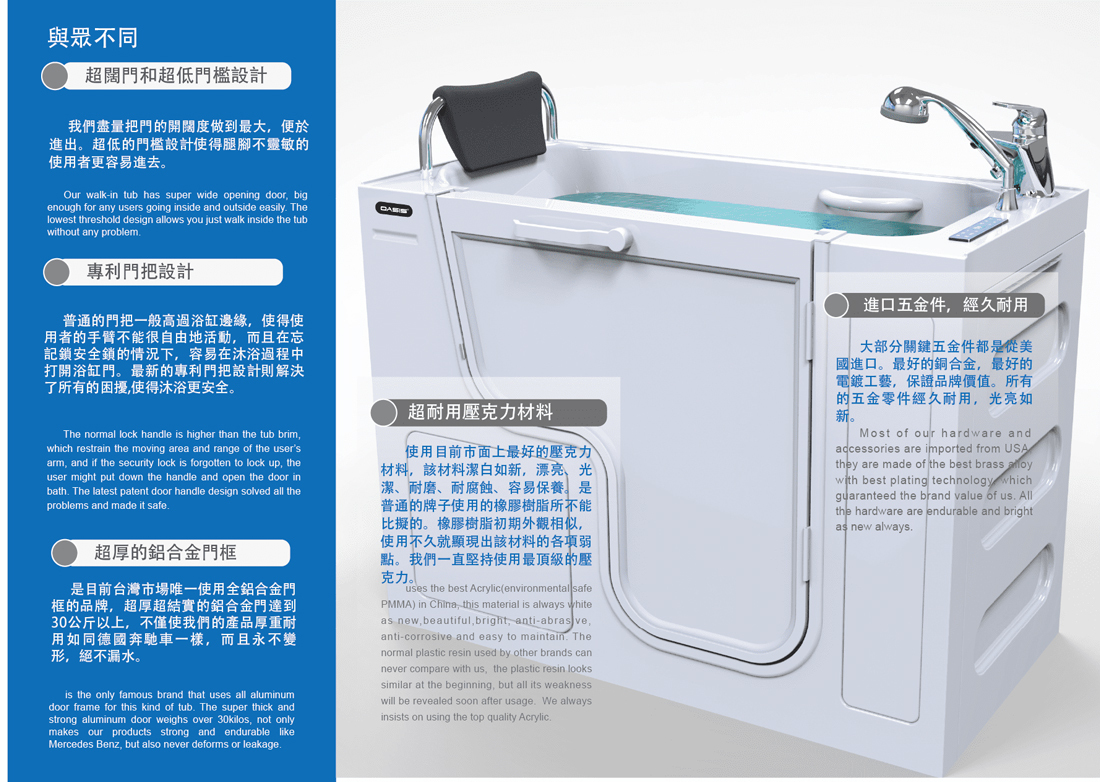 .針對銀髮族、身障朋友以及孕婦等量身打造浴缸
