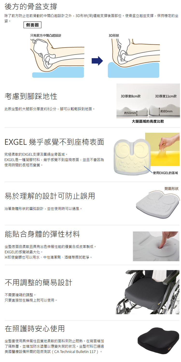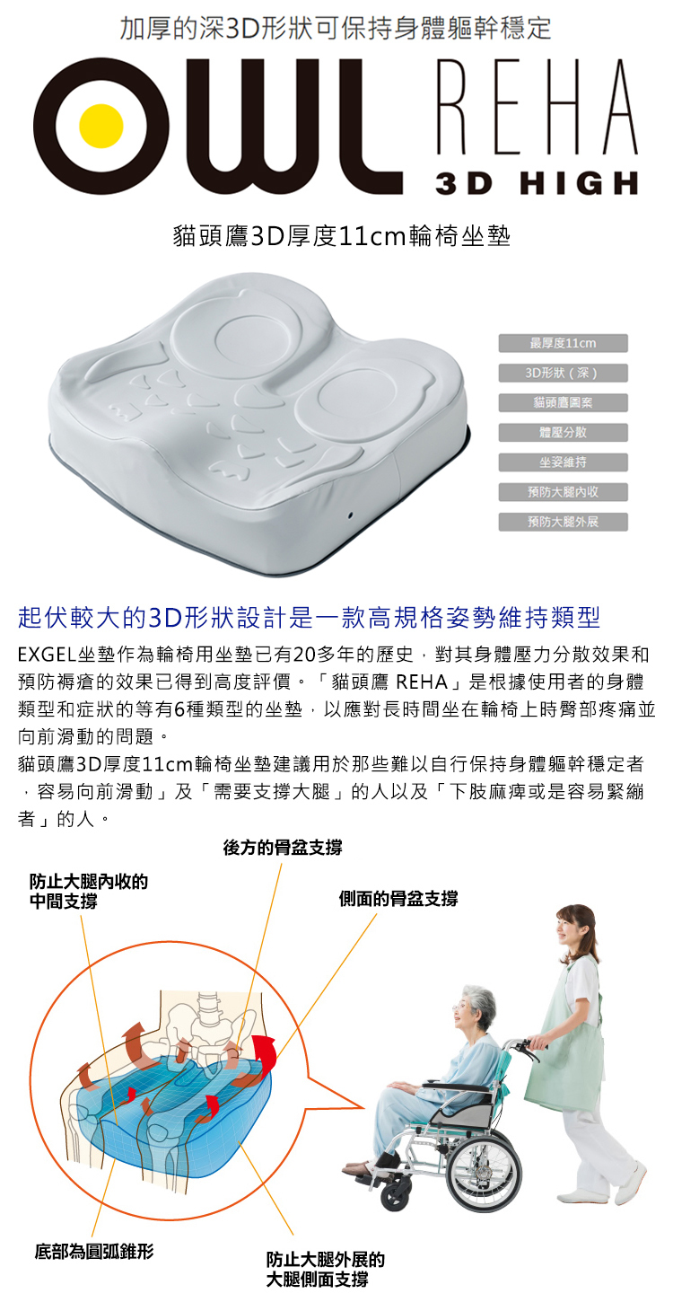 【耆妙屋】EXGEL 貓頭鷹3D厚度11cm輪椅坐墊
