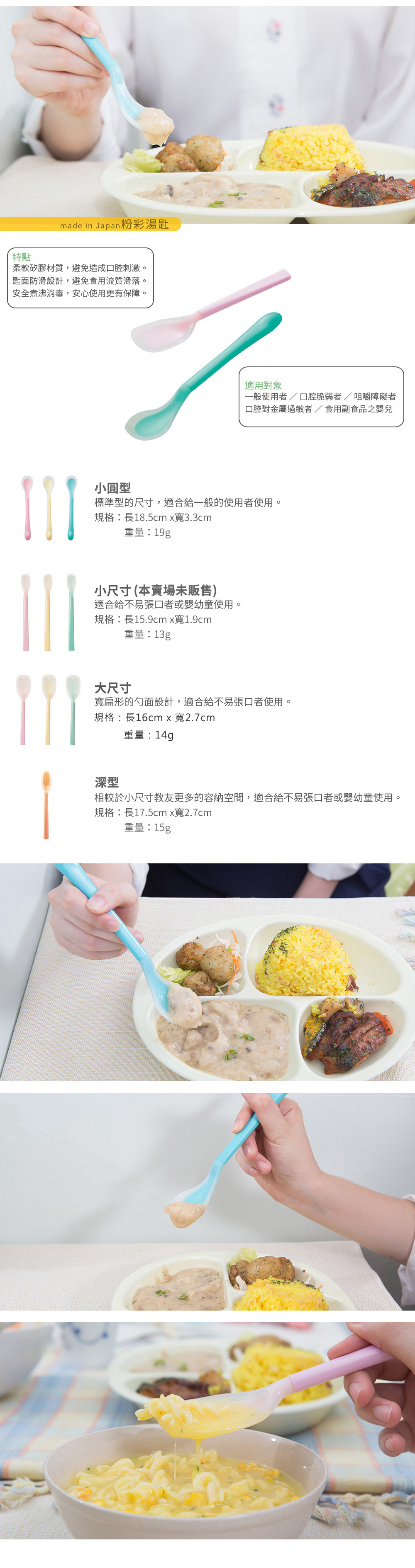 ●易於將食物帶到嘴裏的設計,更可以食用優酪乳,湯和粥等柔軟的食物。