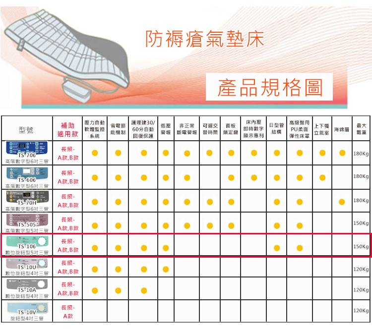【耆妙屋】TS-106數位旋鈕5吋三管氣墊床