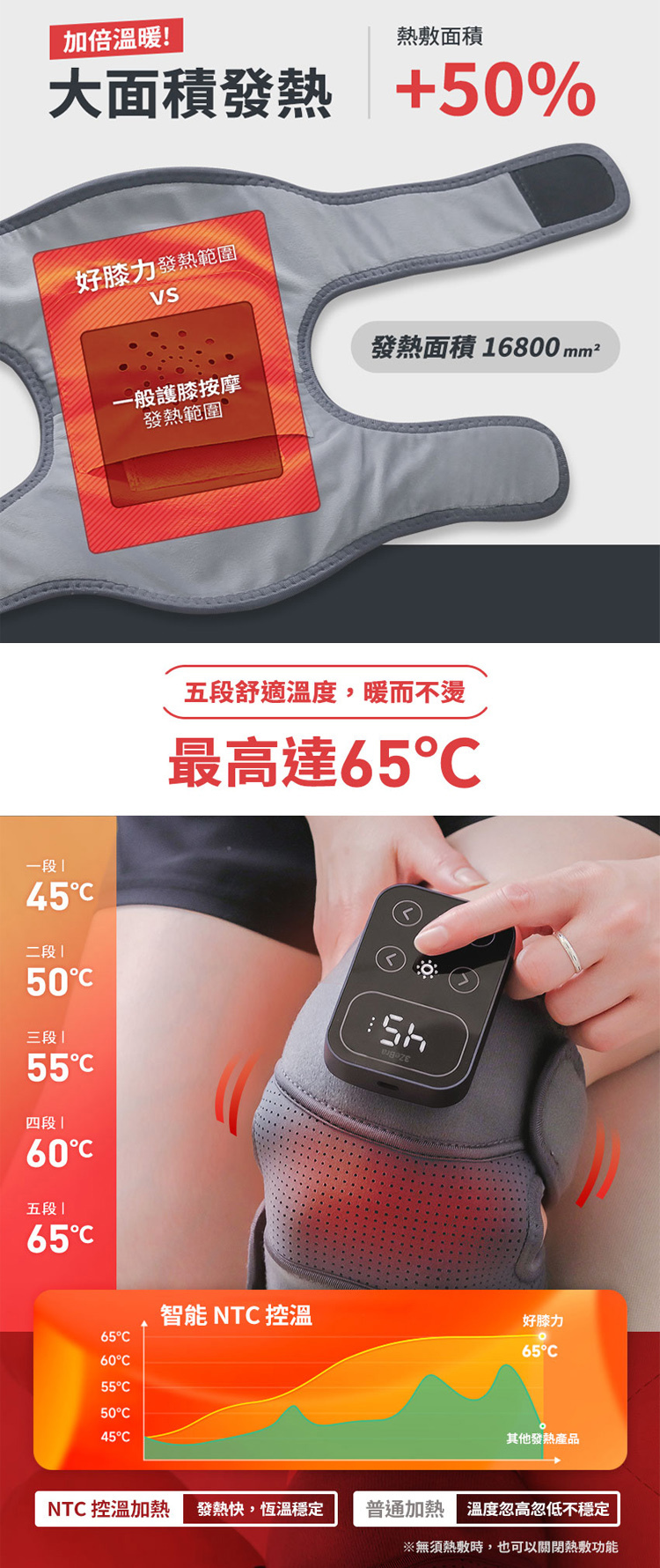 ★獨創大面積發熱暖膝,熱敷面積+50%