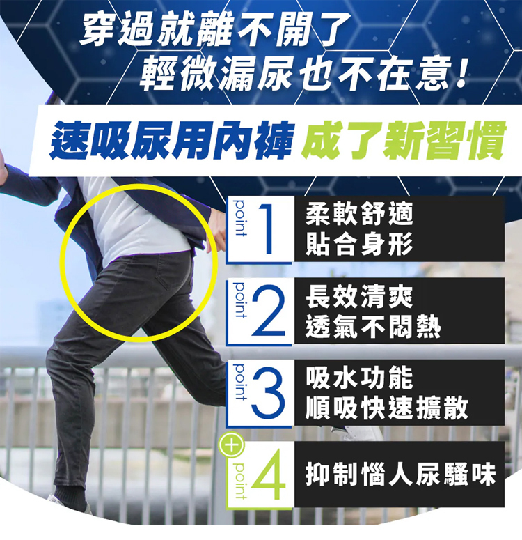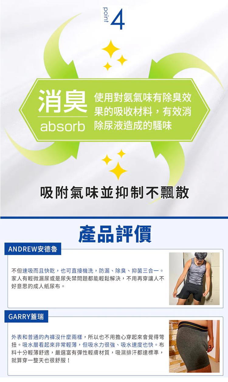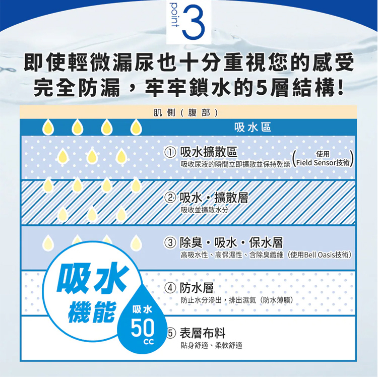 ▴ 5層吸濕結構,防漏、除臭、抑菌三合一。