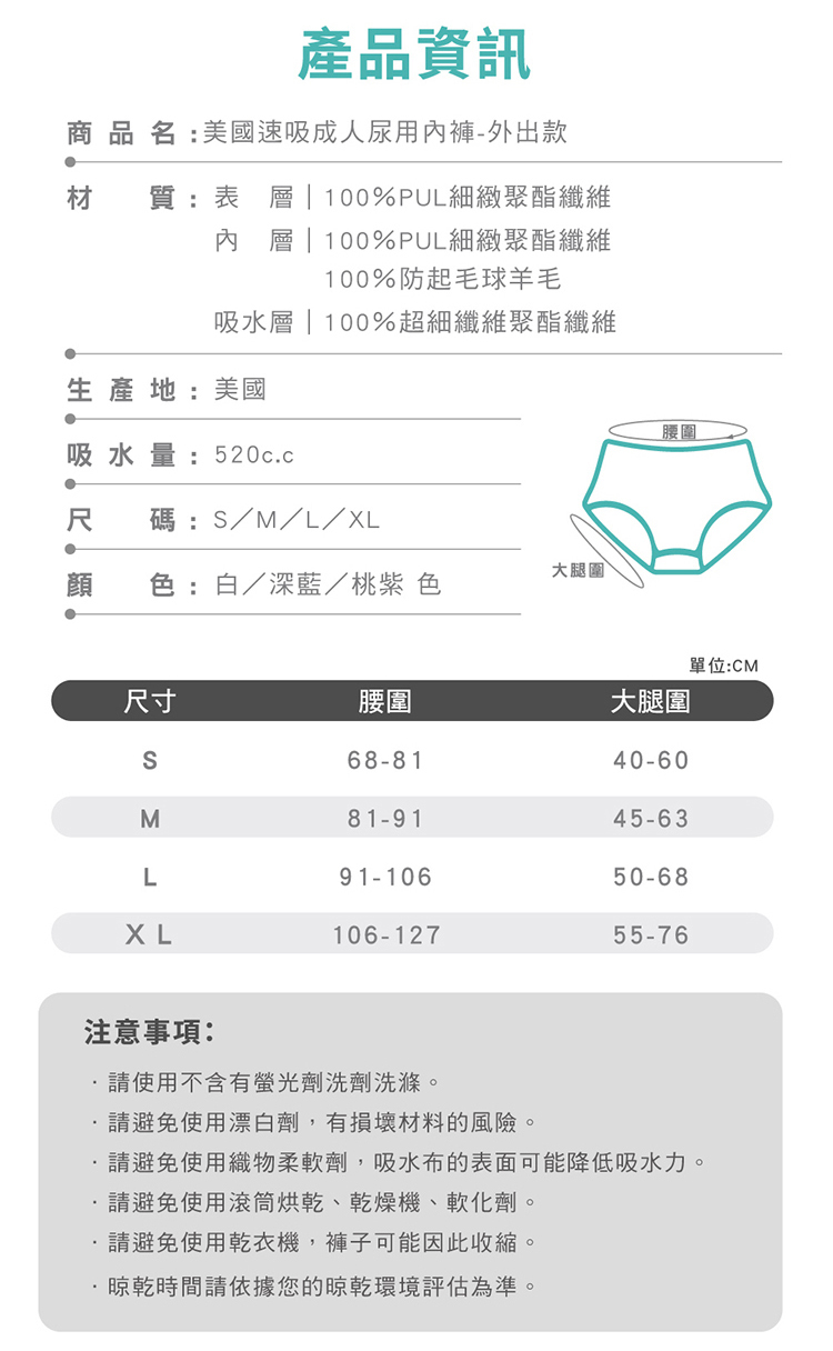 ※ 請注意:收到商品後,請穿著附贈的免洗內褲後試套產品尺寸。 ※
