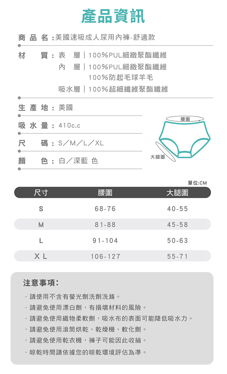 ※ 請注意:收到商品後,請穿著附贈的免洗內褲後試套產品尺寸。 ※