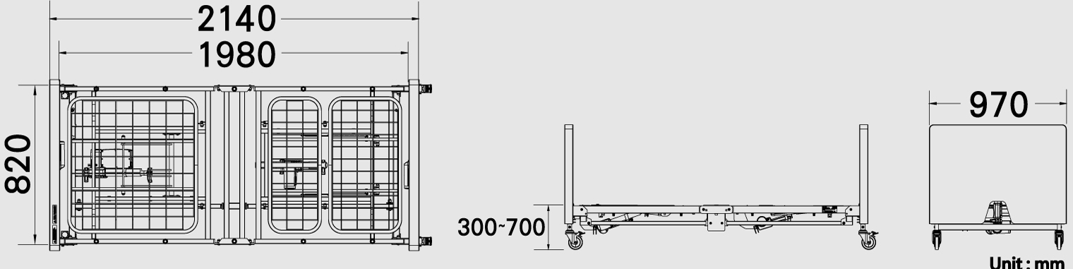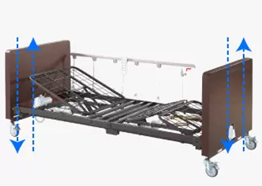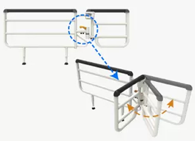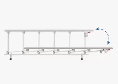 全覆式護欄。拉起保護臥床者,放平方便照護或移位。