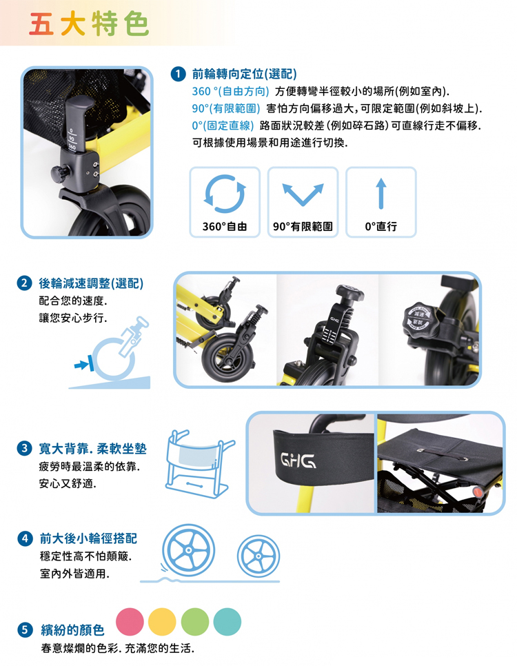 ★ 具前輪轉向定位功能,可根據使用場景和用途進行切換