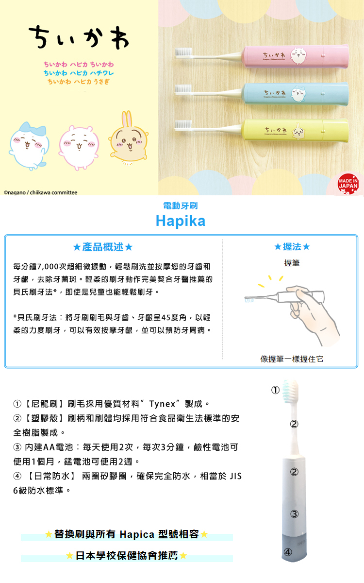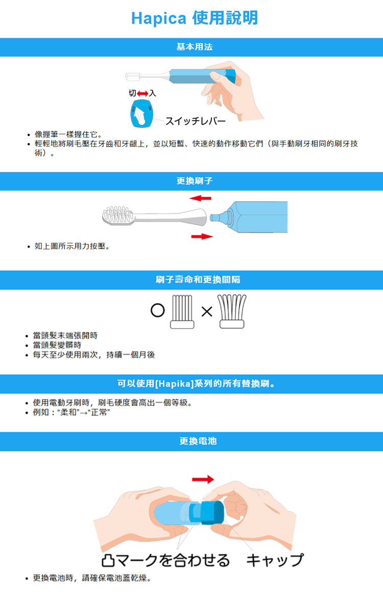內容物: 電動牙刷1支(含刷頭)、替換刷頭1支(內含AA電池1顆)
